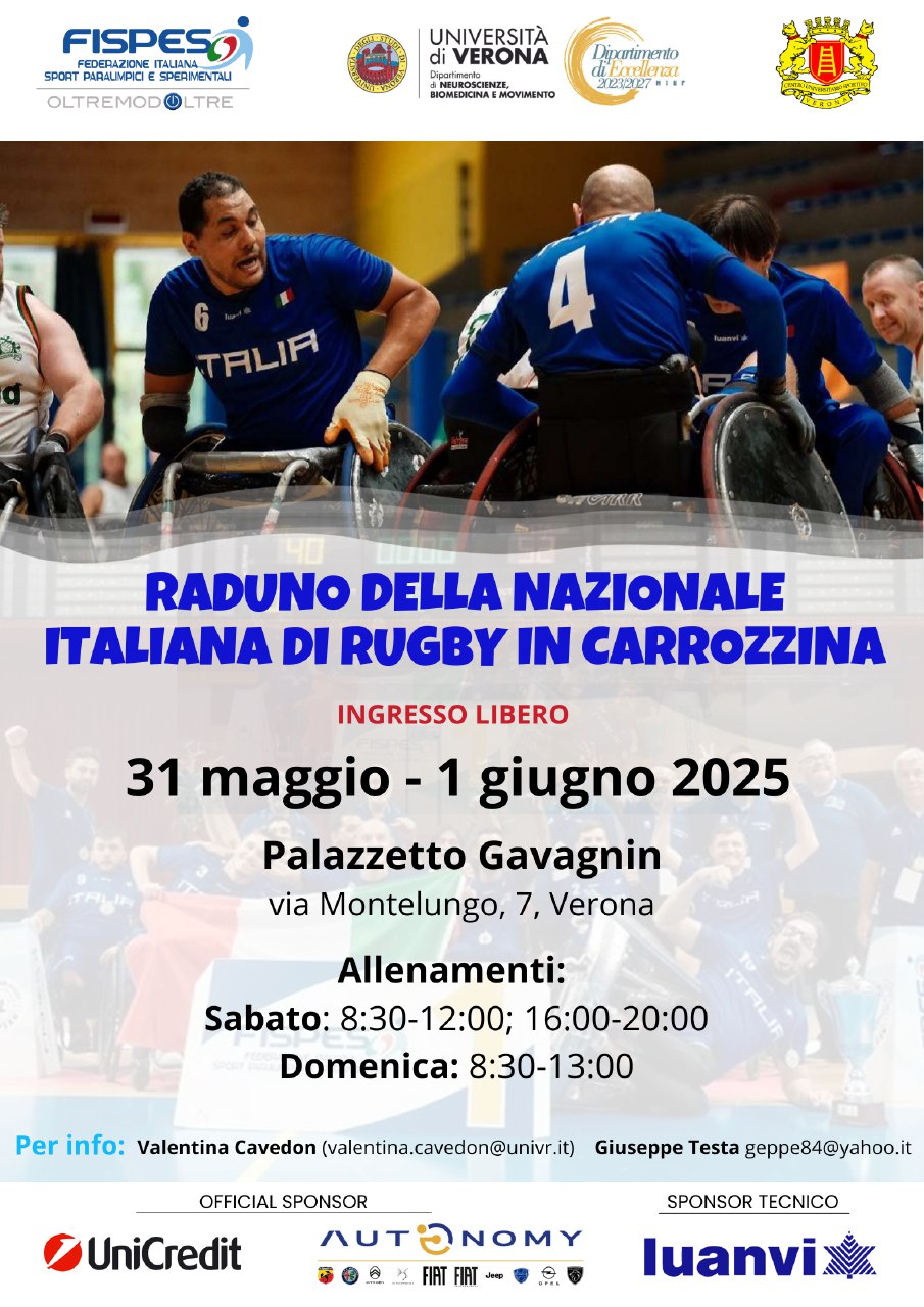 Il raduno della Nazionale Italiana di Rugby in Carrozzina si svolge presso la sede di Scienze Motorie dell'Università di Verona e si articola in due giornate consecutive, durante le quali gli atleti avranno la possibilità di allenarsi e di svolgere batterie di test sport-specifici per valutare il loro stato di forma. Il raduno rappresenta anche un'occasione per effettuare valutazioni utili ai fini scientifici.